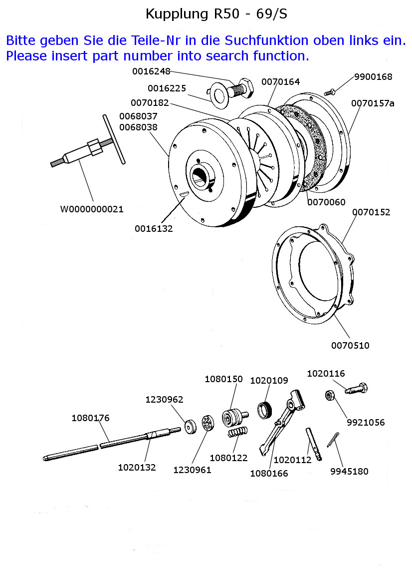 Kupplungsdruckstange R50,50/2,60,60/2,50S,69,69/S komplett